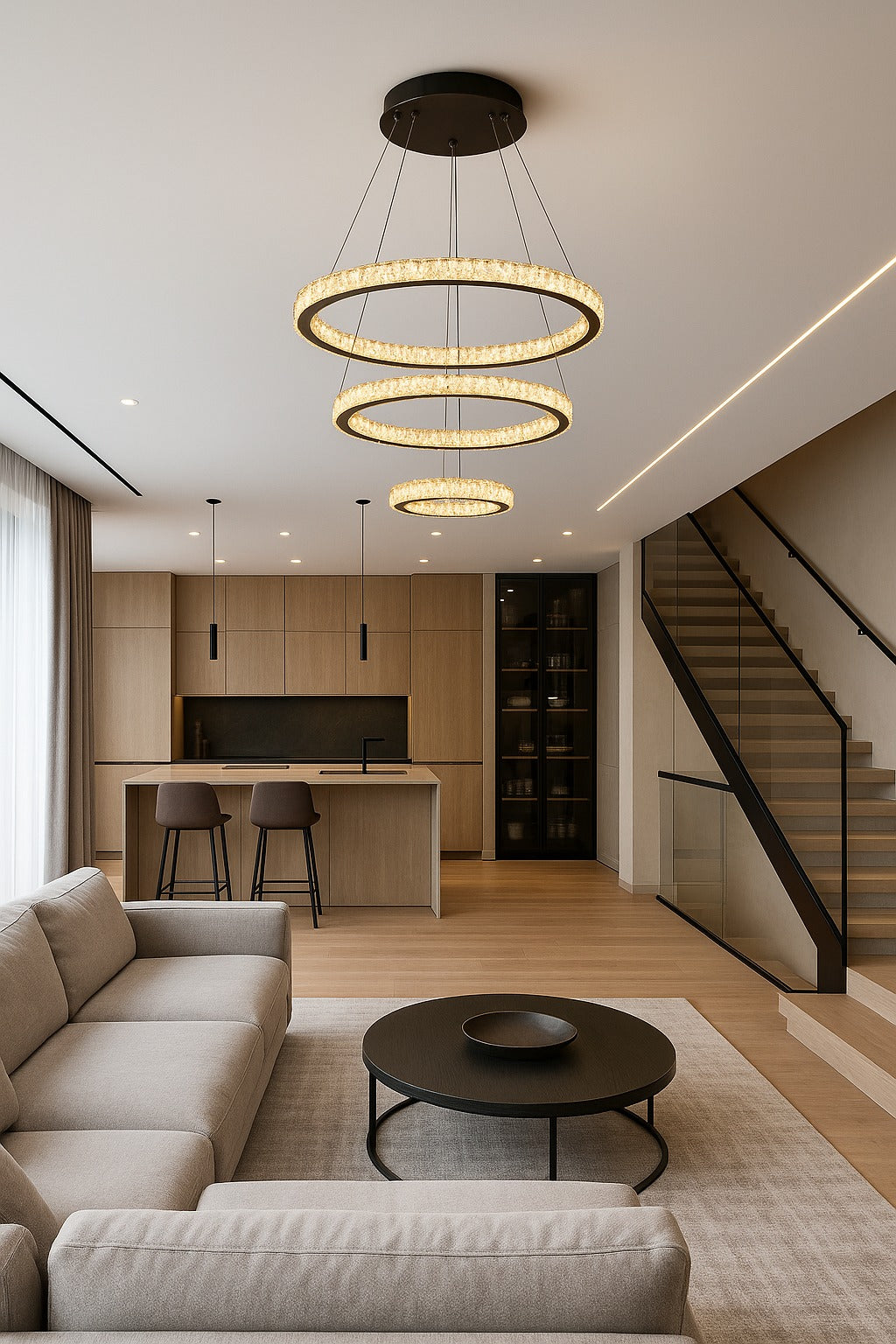 نجف أنيق يضيف لمسة فخامة ورقي لأي مساحة داخلية. يتميز بتصميم عصري ومتوازن يناسب مختلف أنماط الديكور، سواء المودرن أو الكلاسيك، ويمنح المكان إضاءة مريحة تعزز من جمال التفاصيل المحيطة.
